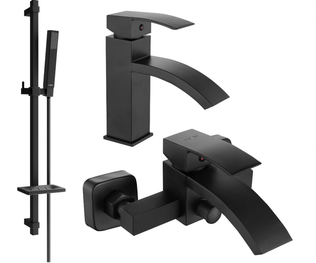 Technické dáta: Materiál umývadlovej batérie: mosadz Povrchová úprava: čierna Hlava: Keramická Perlátor: Áno Výška: 183 mm Rozsah výtoku: 174 mm Materiál vaňovej batérie: Mosadz Povrchová úprava: čierna Hlava: Keramická Perlátor: Nie. Rozsah výtoku: 180 mm Materiál hriadeľa: Nerezová oceľ, ABS Povrchová úprava palice: čierna Výška: 800 mm Šírka lišty: 22 mm Vzdialenosť od steny: 160 mm Miska na mydlo Posuvný držiak na slúchadlo Nastaviteľné montážne držiaky Materiál slúchadiel: Plast Povrchová úprava slúchadiel: čierna Počet funkcií: 1 Výška slúchadla: 215 mm Šírka slúchadla: 30 mm Materiál hadice: PVC Hadie prevedenie: Čierna Dĺžka hadice: 150 cm Mosadzné hroty Hladký povrch uľahčuje údržbu Otočné hroty zabraňujú krúteniu Pružný materiál odolný proti rozťahovaniu a ohýbaniu (GT) Ean: 5907709184985