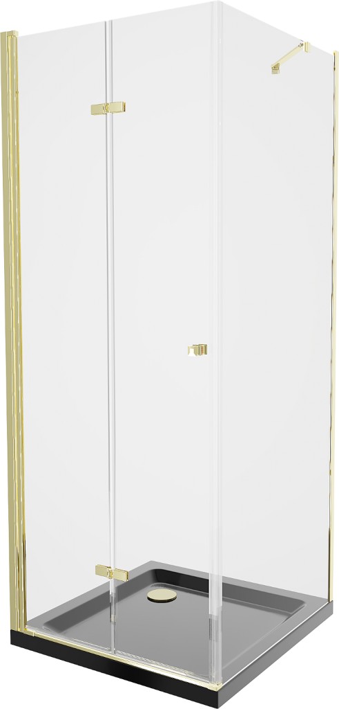Technické údaje kabíny: Rozmer: 90 x 90 cm (dvere 90 cm, stena 90 cm) Výška: 190 cm Montáž: Univerzálna Vstup: skladacie dvere Farba skla: Transparent - Transparent Povrchová úprava: zlatá Typ skla: Tvrdené Hrúbka skla: 6 mm Profil: Hliník Obliečka na jednoduché čistenie: Áno Vyrovnanie nerovností steny: Áno Nastavenie šírky: Áno Možné namontovať na bazény alebo dlaždice: Áno Kovová rukoväť Súprava tesnení na odvod vody Hliníkový prah dverí Technické údaje sprchovej vaničky: Rozmer: 90 x 90 x 5 cm Čierna farba Typ: štvorcový, tenký Materiál: Sanitárny akryl Vystužené dno Kompletný so sifónom vyčisteným zhora Priemer odtoku: 90 mm Povrchová úprava korku: zlatá (GT) Ean: 5907709166639