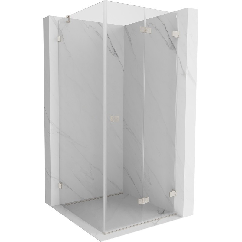 Špecifikácia produktu: Rozmer: 100x100 cm (pravé dvere 100 cm, stena 100 cm) Výška: 200 cm Strana montáže: Pravá Vchod: Skladacie dvere Farba skla: Priehľadná Povrchová úprava: Kartáčovaný nikel Profil: Hliník Typ skla: Tvrdené Hrúbka skla: dvere 6 mm, stena 8 mm Ľahko čistiteľný povlak Možnosť nastavenia šírky Dva montážne systémy: - S profilom, ktorý umožňuje vyrovnanie nerovností stien - Bez profilu pre dokonale rovné steny Možno namontovať na sprchovú vaničku alebo dlaždice Mosadzné spony a pánty v jednej rovine so sklenenou tabuľou Magnetický prúžok a elastomérové tesnenia na odvod vody Hliníkový prah tesnenia dverí(GT) Ean: 5905315483034