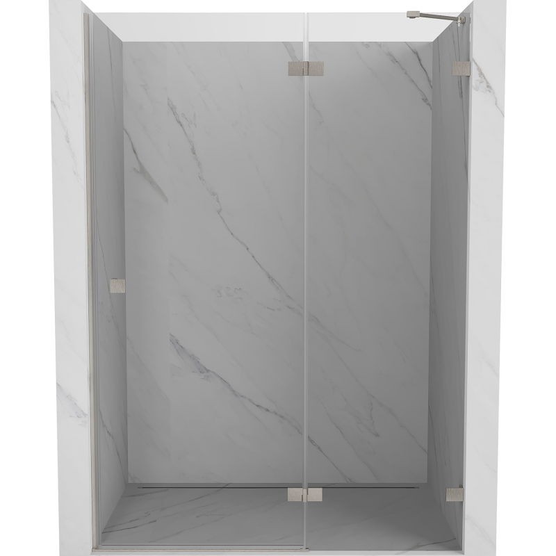 Specifikace produktu: Rozměr: 135x200 cm Strana montáže: Pravá Vchod: Výklopný Barva skla: Průhledná Povrchová úprava: Kartáčovaný nikl Profil: Hliník L-úhlový stabilizátor: nerezová ocel Typ skla: Tvrzené Tloušťka skla: 8 mm Snadno čistitelný povlak Možnost nastavení šířky Dva montážní systémy: - S profilem, který umožňuje vyrovnání nerovností stěn - Bez profilu pro dokonale rovné stěny Lze namontovat na sprchovou vaničku nebo dlaždice Mechanismus zvedání a spouštění dveří Mosazné spony a panty v jedné rovině se skleněnou tabulí Magnetický proužek a elastomerová těsnění pro odvod vody Hliníkový práh těsnění dveří Ean: 5905315423382