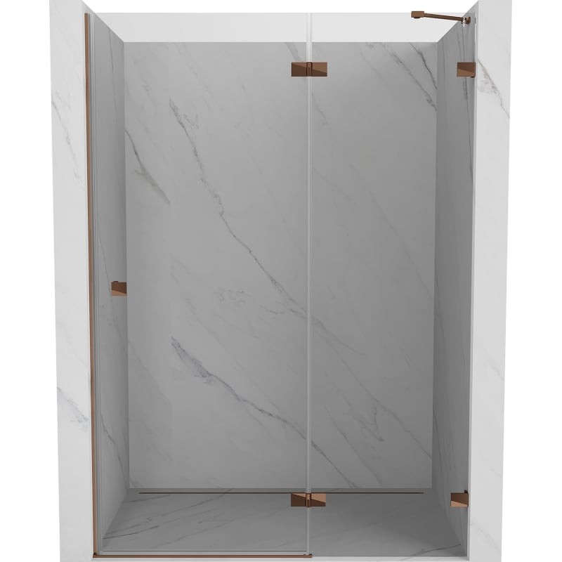 Specifikace produktu: Rozměr: 130x200 cm Strana montáže: Pravá Vchod: Otevíravý Barva skla: Průhledná Povrchová úprava: Růžové zlato Profil: Hliník Nosník: Nerezová ocel Typ skla: Tvrzené Tloušťka skla: 8 mm Povrchová úprava pro snadné čištění Nastavitelná šířka Dva montážní systémy: - S profilem, který umožňuje vyrovnání nerovností stěn - Bez profilu pro dokonale rovné stěny Možnost montáže na sprchovou vaničku nebo obklady Mechanismus pro zvedání a spouštění dveří Mosazné svorky a panty v jedné rovině se sklem Magnetický proužek a elastomerové těsnění pro odtok vody Hliníkový práh těsnění dveří Ean: 5905315419620