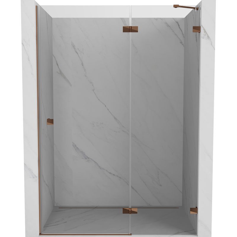 Specifikace produktu: Rozměr: 135x200 cm Strana montáže: Pravá Vchod: Otevíravý Barva skla: Průhledná Povrchová úprava: Růžové zlato Profil: Hliník Nosník: Nerezová ocel Typ skla: Tvrzené Tloušťka skla: 8 mm Povrchová úprava pro snadné čištění Nastavitelná šířka Dva montážní systémy: - S profilem, který umožňuje vyrovnání nerovností stěn - Bez profilu pro dokonale rovné stěny Možnost montáže na sprchovou vaničku nebo dlaždice Mechanismus pro zvedání a spouštění dveří Mosazné svorky a panty v jedné rovině se skleněnou tabulí Magnetický proužek a elastomerové těsnění pro odvod vody Hliníkový práh těsnění dveří Ean: 5905315419637