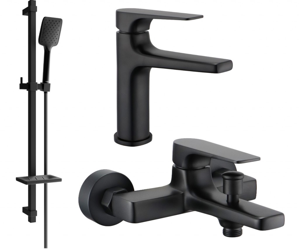 Technické dáta: Materiál umývadlovej batérie: mosadz Povrchová úprava: čierna Hlava: Keramická Perlátor: Áno Výška: 165 mm Rozsah výtoku: 114 mm Materiál vaňovej batérie: Mosadz Povrchová úprava: čierna Hlava: Keramická Perlátor: Áno Rozsah výtoku: 115 mm Materiál hriadeľa: Nerezová oceľ, ABS Povrchová úprava palice: čierna Výška: 800 mm Šírka lišty: 22 mm Vzdialenosť od steny: 105 mm Miska na mydlo Posuvný držiak na slúchadlo Nastaviteľné montážne držiaky Materiál slúchadiel: Plast Povrchová úprava slúchadiel: čierna Počet funkcií: 3 Výška slúchadla: 225 mm Šírka hlavy: 80 mm Materiál hadice: PVC Hadie prevedenie: Čierna Dĺžka hadice: 150 cm Mosadzné hroty Hladký povrch uľahčuje údržbu Otočné hroty zabraňujú krúteniu Pružný materiál odolný proti rozťahovaniu a ohýbaniu (GT) Ean: 5907709185166