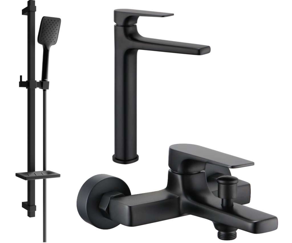 Technické dáta: Materiál umývadlovej batérie: mosadz Povrchová úprava: čierna Hlava: Keramická Perlátor: Áno Výška: 276 mm Dosah výtoku: 142 mm Materiál vaňovej batérie: Mosadz Povrchová úprava: čierna Hlava: Keramická Perlátor: Áno Rozsah výtoku: 115 mm Materiál hriadeľa: Nerezová oceľ, ABS Povrchová úprava palice: čierna Výška: 800 mm Šírka lišty: 22 mm Vzdialenosť od steny: 105 mm Miska na mydlo Posuvný držiak na slúchadlo Nastaviteľné montážne držiaky Materiál slúchadiel: Plast Povrchová úprava slúchadiel: čierna Počet funkcií: 3 Výška slúchadla: 225 mm Šírka hlavy: 80 mm Materiál hadice: PVC Hadie prevedenie: Čierna Dĺžka hadice: 150 cm Mosadzné hroty Hladký povrch uľahčuje údržbu Otočné hroty zabraňujú krúteniu Pružný materiál odolný proti rozťahovaniu a ohýbaniu (GT) Ean: 5907709185326