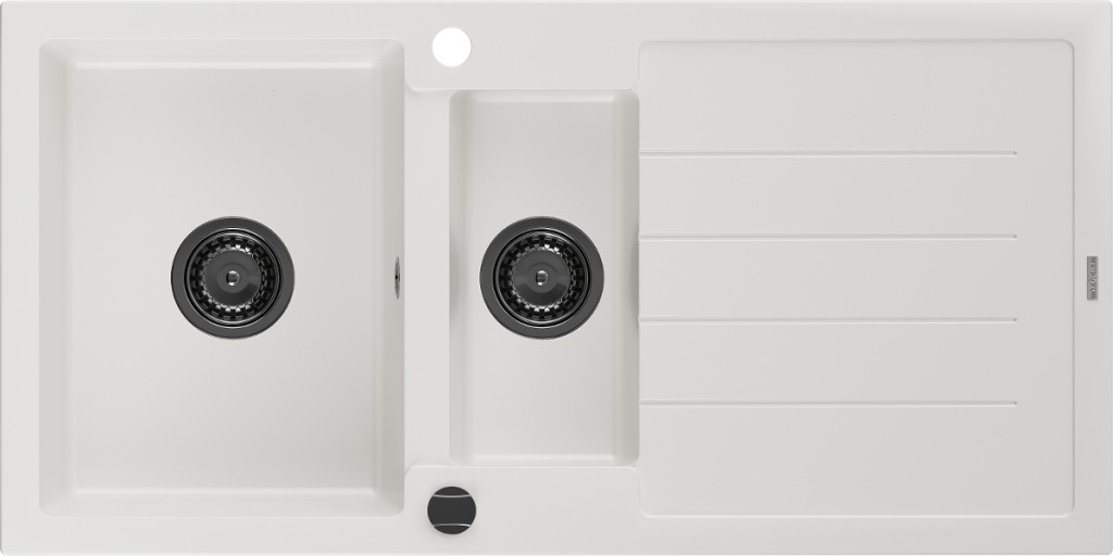 MEXEN/S MEXEN/S - Enzo granitový drez 1-miska s odkvapkávačom vrátane batérie Rita, čierny/strieborný metalik 6506-73-670300-70-B