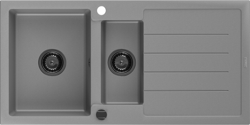 Technické dáta: Rozmer: 1000x500x200 mm Hĺbka komory: 190 mm (väčšia), 115 mm (menšia) Rozmery komory: 430x330 mm (väčšie), 340x170 mm (menšie) Priemer odtoku: ø90 mm Typ: 1,5-miska s odkvapkávačom Typ: Zapustené do pracovnej dosky Materiál: žula Šedá farba Povrchová úprava sifónu: čierna Prepadový otvor: Áno Otvor pre batériu: Áno Vrátane automatického sifónu Vysoká odolnosť proti poškriabaniu a zmene farby Odolnosť proti tepelným šokom Povrch pre ľahké čistenie(GT) Ean: 5905315013460