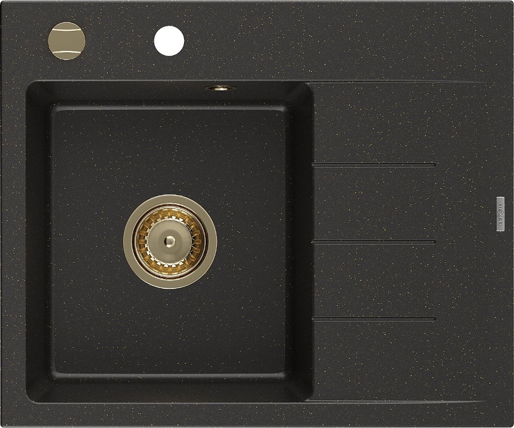 Špecifikácia produktu: Rozmer: 600x500x190 mm Hĺbka komory: 190 mm Rozmery komory: 375x335 mm Priemer odtoku: ø90 mm Typ: 1-miska s krátkym odkvapkávačom Typ: Zapustený do pracovnej dosky, Ľavý Materiál: žula Farba: čierna / zlatá metalíza Povrchová úprava sifónu: zlatá Prepadový otvor: Áno Otvor pre batériu: Áno Vrátane automatického sifónu Vysoká odolnosť proti poškriabaniu a zmene farby Odolnosť proti tepelným šokom Povrch pre ľahké čistenie Jeden dodatočný vyfrézovaný otvor na samodierovanie ø35(GT) Ean: 5905315462046