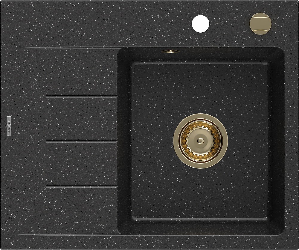 Špecifikácia produktu: Rozmer: 600x500x190 mm Hĺbka komory: 190 mm Rozmery komory: 375x335 mm Priemer odtoku: ø90 mm Typ: 1-miska s krátkym odkvapkávačom Typ: Zapustený do pracovnej dosky, pravý Materiál: žula Farba: čierna / strieborná metalíza Povrchová úprava sifónu: zlatá Prepadový otvor: Áno Otvor pre batériu: Áno Vrátane automatického sifónu Vysoká odolnosť proti poškriabaniu a zmene farby Odolnosť proti tepelným šokom Povrch pre ľahké čistenie Jeden dodatočný vyfrézovaný otvor na samodierovanie ø35(GT) Ean: 5905315462176