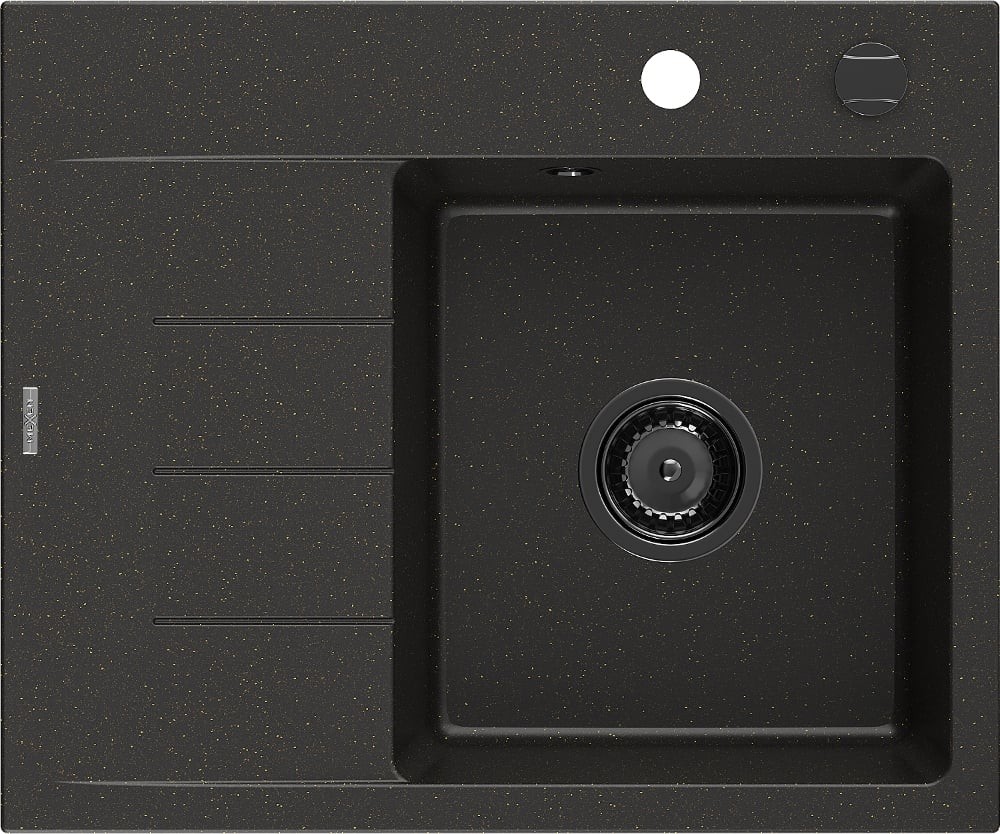 Špecifikácia produktu: Rozmer: 600x500x190 mm Hĺbka komory: 190 mm Rozmery komory: 375x335 mm Priemer odtoku: ø90 mm Typ: 1-miska s krátkym odkvapkávačom Typ: Zapustený do pracovnej dosky, pravý Materiál: žula Farba: čierna / zlatá metalíza Povrchová úprava sifónu: čierna Prepadový otvor: Áno Otvor pre batériu: Áno Vrátane automatického sifónu Vysoká odolnosť proti poškriabaniu a zmene farby Odolnosť proti tepelným šokom Povrch pre ľahké čistenie Jeden dodatočný vyfrézovaný otvor na samodierovanie ø35(GT) Ean: 5905315462251