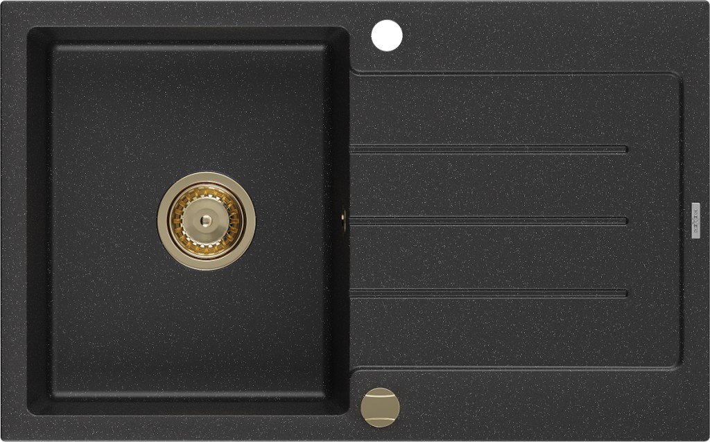 Technické dáta: Rozmer: 795 x 495 x 200 mm Hĺbka komory: 200 mm Rozmery komory: 440x360 mm Priemer odtoku: ø90 mm Typ: 1-miska s odkvapkávačom Typ: Zapustené do pracovnej dosky Materiál: žula Farba: čierna/strieborná metalíza Povrchová úprava sifónu: zlatá Prepadový otvor: Áno Otvor pre batériu: Áno Vrátane automatického sifónu Vysoká odolnosť proti poškriabaniu a zmene farby Odolnosť proti tepelným šokom Ľahko čistiteľný povrch Dva dodatočné vyfrézované otvory na samodierovanie ø35 (GT) Ean: 5905315012142