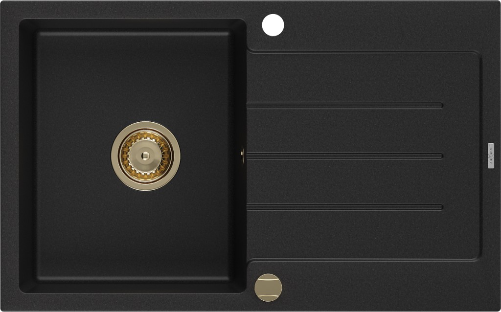 Technické dáta: Rozmer: 795 x 495 x 200 mm Hĺbka komory: 200 mm Rozmery komory: 440x360 mm Priemer odtoku: ø90 mm Typ: 1-miska s odkvapkávačom Typ: Zapustené do pracovnej dosky Materiál: žula Čierna farba Povrchová úprava sifónu: zlatá Prepadový otvor: Áno Otvor pre batériu: Áno Vrátane automatického sifónu Vysoká odolnosť proti poškriabaniu a zmene farby Odolnosť proti tepelným šokom Ľahko čistiteľný povrch Dva dodatočné vyfrézované otvory na samodierovanie ø35 (GT) Ean: 5905315012173