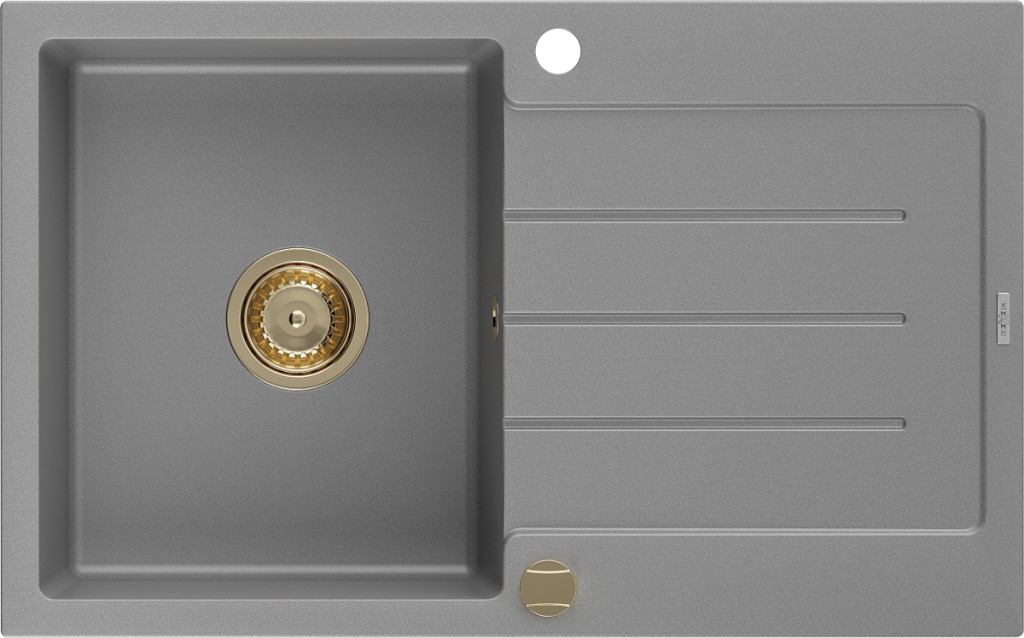 Technické dáta: Rozmer: 795 x 495 x 200 mm Hĺbka komory: 200 mm Rozmery komory: 440x360 mm Priemer odtoku: ø90 mm Typ: 1-miska s odkvapkávačom Typ: Zapustené do pracovnej dosky Materiál: žula Šedá farba Povrchová úprava sifónu: zlatá Prepadový otvor: Áno Otvor pre batériu: Áno Vrátane automatického sifónu Vysoká odolnosť proti poškriabaniu a zmene farby Odolnosť proti tepelným šokom Ľahko čistiteľný povrch Dva dodatočné vyfrézované otvory na samodierovanie ø35(GT) Ean: 5905315012135