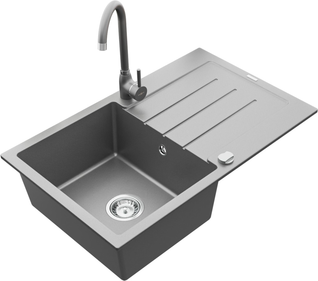 Technické dáta: drez: Rozmer: 795 x 495 x 200 mm Hĺbka komory: 200 mm Rozmery komory: 440x360 mm Priemer odtoku: ø90 mm Typ: 1-miska s odkvapkávačom Typ: Zapustené do pracovnej dosky Šedá farba Povrchová úprava sifónu: Chrome Materiál: žula (80% žulové kamenivo, 20% živice) Prepadový otvor: Áno Otvory: (batérie, automatické) 2 Inštalácia: Univerzálna, je možné inštalovať s odkvapkávačom na ľavú alebo pravú stranu Vysoká odolnosť proti poškriabaniu a zmene farby Odolnosť proti tepelným šokom Ľahko čistiteľný povrch Dva dodatočné vyfrézované otvory na samodierovanie ø35 kuchynská batéria: Materiál: mosadz Šedá farba Hlava: Keramická Prevzdušňovač: Áno Výška batérie: 335 mm Rozsah výtoku: 180 mm(GT) Ean: 5907709160668