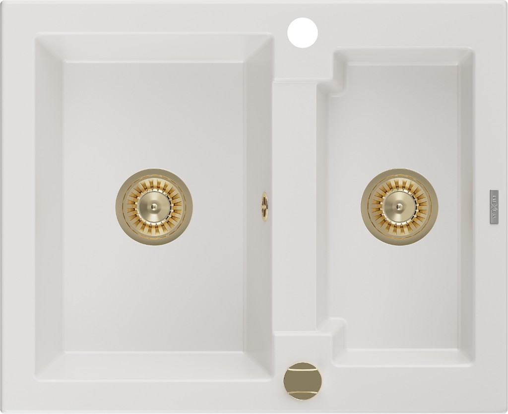 Technické dáta: Rozmer: 582 x 475 x 177 mm Hĺbka komory: 162 mm (väčšia), 102 mm (menšia) Rozmery komory: 395x272 mm (väčšie), 375x182 mm (menšie) Priemer odtoku: ø90 mm Typ: 1,5-komorový Typ: Zapustené do pracovnej dosky Materiál: žula biela farba Povrchová úprava sifónu: zlatá Prepadový otvor: Áno Otvor pre batériu: Áno Vrátane automatického sifónu Vysoká odolnosť proti poškriabaniu a zmene farby Odolnosť proti tepelným šokom Ľahko čistiteľný povrch(GT) Ean: 5905315012463