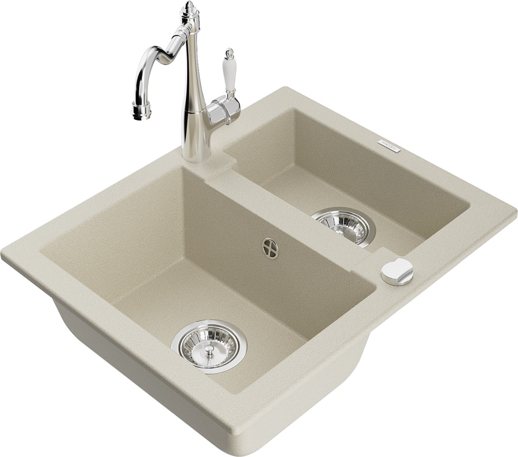 Technické dáta: drez: Rozmer: 582 x 475 x 177 mm Hĺbka komory: 162 mm (väčšia), 102 mm (menšia) Rozmery komory: 395x272 mm (väčšie), 375x182 mm (menšie) Priemer odtoku: ø90 mm Typ: 1,5 komory Typ: Zapustené do pracovnej dosky Farba béžová Povrchová úprava sifónu: Chrome Materiál: žula (80% žulové kamenivo, 20% živice) Prepadový otvor: Áno Otvory: (batérie, automatické) 2 Vysoká odolnosť proti poškriabaniu a zmene farby Odolnosť proti tepelným šokom Ľahko čistiteľný povrch Jeden dodatočný vyfrézovaný otvor na samodierovanie ø35 kuchynská batéria: Materiál: mosadz Farba: Chrome Hlava: Keramická Prevzdušňovač: Áno Typ: Jedna páka Výška batérie: 290 mm Rozsah výtoku: 260 mm(GT) Ean: 5905315042231