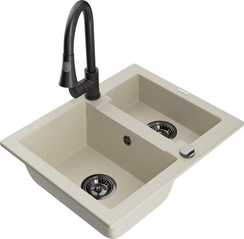 Technické dáta: drez: Rozmer: 582 x 475 x 177 mm Hĺbka komory: 162 mm (väčšia), 102 mm (menšia) Rozmery komory: 395x272 mm (väčšie), 375x182 mm (menšie) Priemer odtoku: ø90 mm Typ: 1,5 komory Typ: Zapustené do pracovnej dosky Farba béžová Povrchová úprava sifónu: čierna Materiál: žula (80% žulové kamenivo, 20% živice) Prepadový otvor: Áno Otvory: (batérie, automatické) 2 Vysoká odolnosť proti poškriabaniu a zmene farby Odolnosť proti tepelným šokom Ľahko čistiteľný povrch Jeden dodatočný vyfrézovaný otvor na samodierovanie ø35 kuchynská batéria: Materiál: mosadz Čierna farba Hlava: Keramická Prevzdušňovač: Áno Typ: Jedna páka Výška batérie: 380 mm Rozsah výtoku: 252 mm Typ výtoku: Výsuvný(GT) Ean: 5905315032003