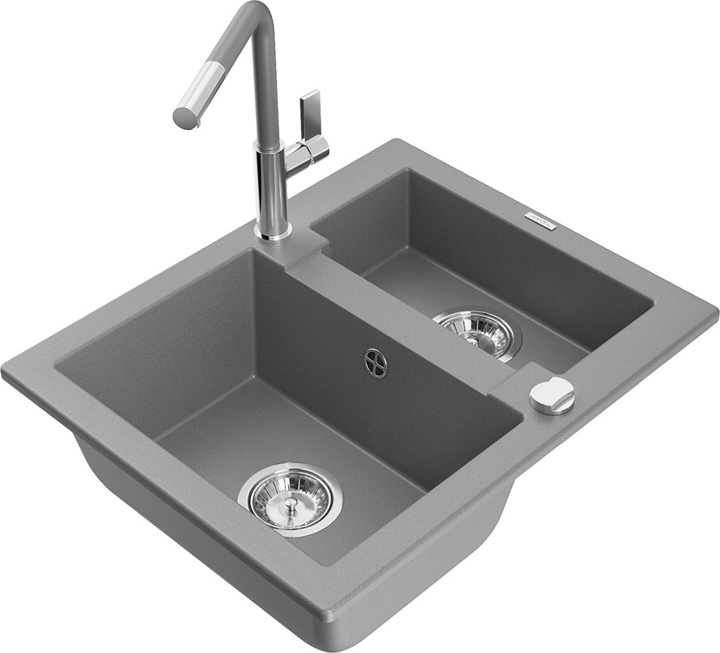Technické dáta: drez: Rozmer: 582 x 475 x 177 mm Hĺbka komory: 162 mm (väčšia), 102 mm (menšia) Rozmery komory: 395x272 mm (väčšie), 375x182 mm (menšie) Priemer odtoku: ø90 mm Typ: 1,5 komory Typ: Zapustené do pracovnej dosky Šedá farba Povrchová úprava sifónu: Chrome Materiál: žula (80% žulové kamenivo, 20% živice) Prepadový otvor: Áno Otvory: (batérie, automatické) 2 Vysoká odolnosť proti poškriabaniu a zmene farby Odolnosť proti tepelným šokom Ľahko čistiteľný povrch Jeden dodatočný vyfrézovaný otvor na samodierovanie ø35 kuchynská batéria: Materiál: mosadz Farba: chróm/sivá Hlava: Keramická Prevzdušňovač: Áno Typ: Jedna páka Rozsah výtoku: 245 mm Výška batérie: 307 mm(GT) Ean: 5905315063618