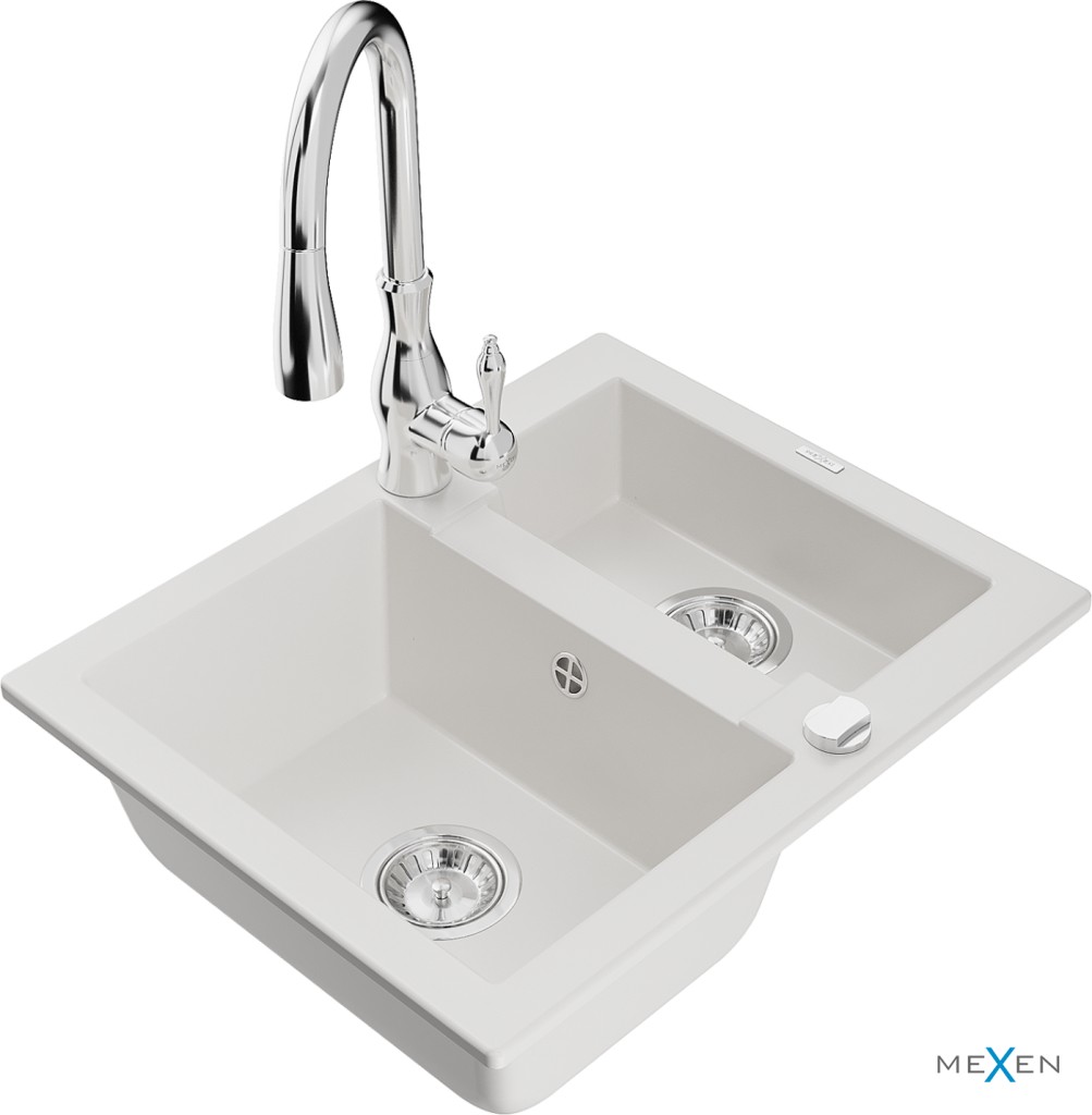 Technické dáta: drez: Rozmer: 582 x 475 x 177 mm Hĺbka komory: 162 mm (väčšia), 102 mm (menšia) Rozmery komory: 395x272 mm (väčšie), 375x182 mm (menšie) Priemer odtoku: ø90 mm Typ: 1,5 komory Typ: Zapustené do pracovnej dosky biela farba Povrchová úprava sifónu: Chrome Materiál: žula (80% žulové kamenivo, 20% živice) Prepadový otvor: Áno Otvory: (batérie, automatické) 2 Vysoká odolnosť proti poškriabaniu a zmene farby Odolnosť proti tepelným šokom Ľahko čistiteľný povrch Jeden dodatočný vyfrézovaný otvor na samodierovanie ø35 kuchynská batéria: Materiál: mosadz Farba: Chrome Hlava: Keramická Prevzdušňovač: Áno Typ: Jedna páka Výška batérie: 410 mm Rozsah výtoku: 231 mm(GT) Ean: 5905315037046