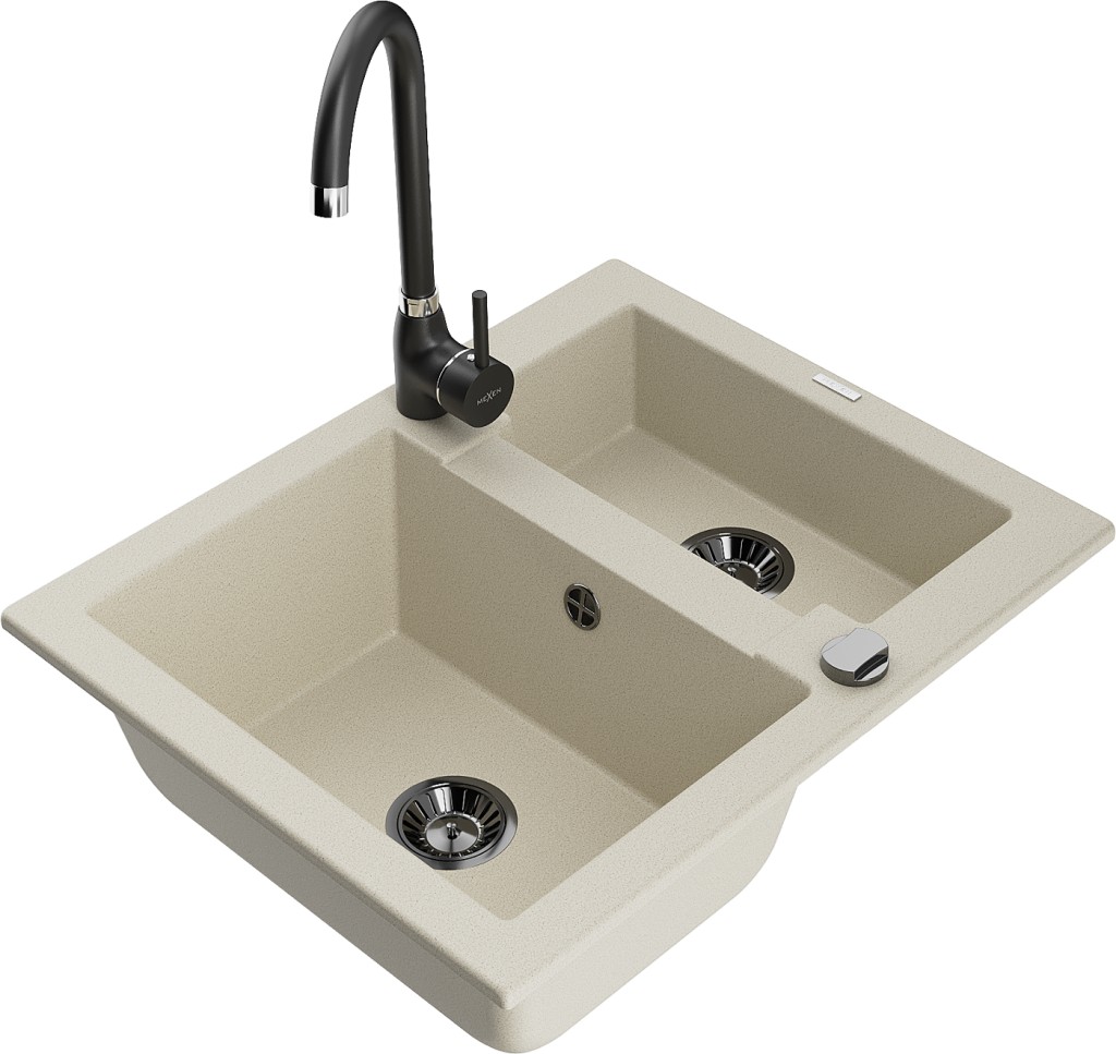 Technické dáta: drez: Rozmer: 582 x 475 x 177 mm Hĺbka komory: 162 mm (väčšia), 102 mm (menšia) Rozmery komory: 395x272 mm (väčšie), 375x182 mm (menšie) Priemer odtoku: ø90 mm Typ: 1,5 komory Typ: Zapustené do pracovnej dosky Farba béžová Povrchová úprava sifónu: čierna Materiál: žula (80% žulové kamenivo, 20% živice) Prepadový otvor: Áno Otvory: (batérie, automatické) 2 Vysoká odolnosť proti poškriabaniu a zmene farby Odolnosť proti tepelným šokom Ľahko čistiteľný povrch Jeden dodatočný vyfrézovaný otvor na samodierovanie ø35 kuchynská batéria: Materiál: mosadz Čierna farba Hlava: Keramická Prevzdušňovač: Áno Typ: Jedna páka Výška batérie: 335 mm Rozsah výtoku: 180 mm(GT) Ean: 5905315016645