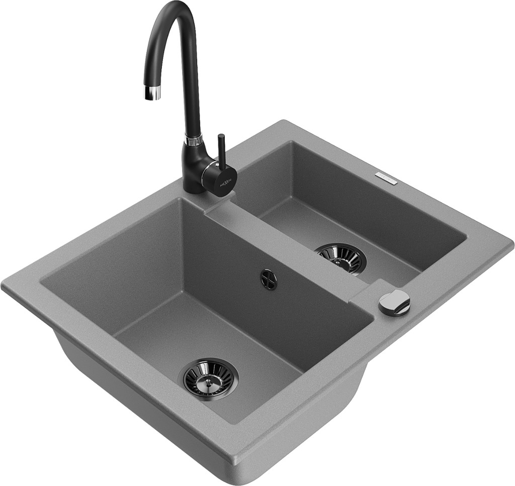 Technické dáta: drez: Rozmer: 582 x 475 x 177 mm Hĺbka komory: 162 mm (väčšia), 102 mm (menšia) Rozmery komory: 395x272 mm (väčšie), 375x182 mm (menšie) Priemer odtoku: ø90 mm Typ: 1,5 komory Typ: Zapustené do pracovnej dosky Šedá farba Povrchová úprava sifónu: čierna Materiál: žula (80% žulové kamenivo, 20% živice) Prepadový otvor: Áno Otvory: (batérie, automatické) 2 Vysoká odolnosť proti poškriabaniu a zmene farby Odolnosť proti tepelným šokom Ľahko čistiteľný povrch Jeden dodatočný vyfrézovaný otvor na samodierovanie ø35 kuchynská batéria: Materiál: mosadz Čierna farba Hlava: Keramická Prevzdušňovač: Áno Typ: Jedna páka Výška batérie: 335 mm Rozsah výtoku: 180 mm(GT) Ean: 5905315016683