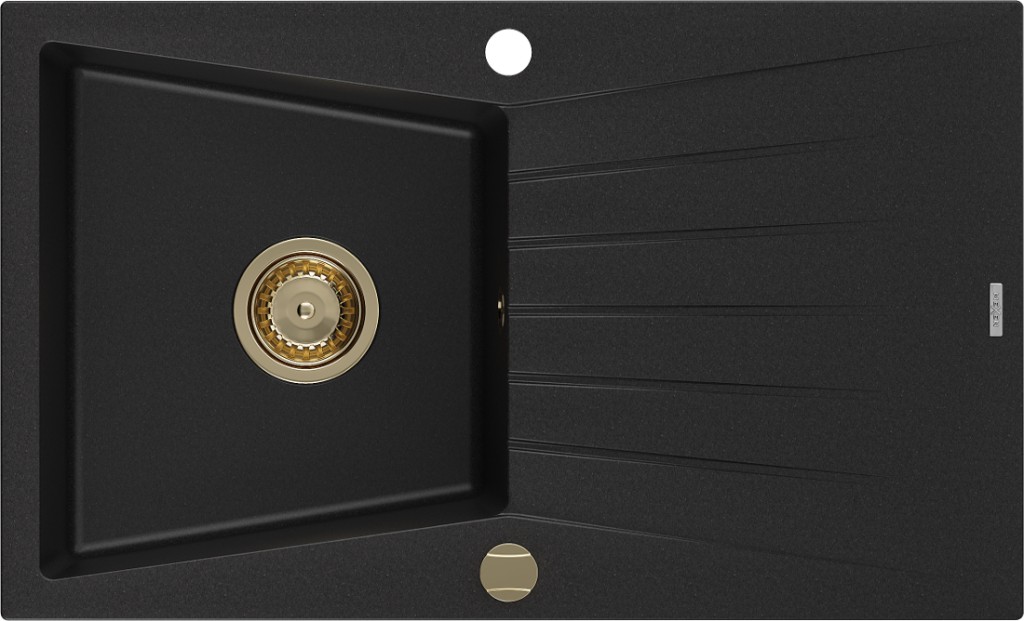 Technické dáta: Rozmer: 775x470x190mm Hĺbka komory: 180 mm Rozmery komory: 410x355 mm Priemer odtoku: ø90 mm Typ: 1-miska s odkvapkávačom Typ: Zapustené do pracovnej dosky Materiál: žula Čierna farba Povrchová úprava sifónu: zlatá Prepadový otvor: Áno Otvor pre batériu: Áno Vrátane automatického sifónu Vysoká odolnosť proti poškriabaniu a zmene farby Odolnosť proti tepelným šokom Ľahko čistiteľný povrch(GT) Ean: 5905315012241