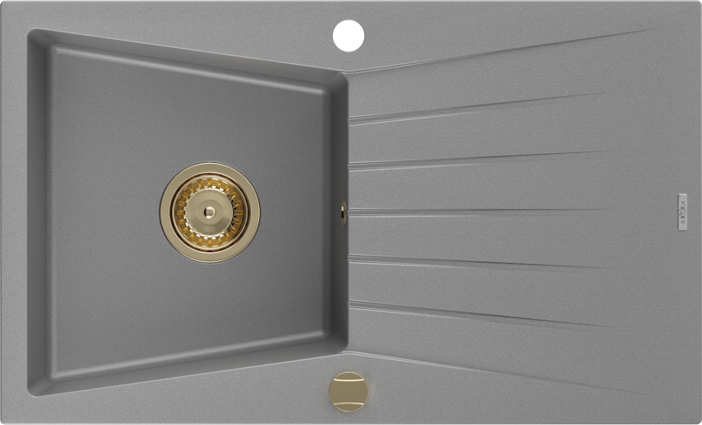 Technické dáta: Rozmer: 775x470x190mm Hĺbka komory: 180 mm Rozmery komory: 410x355 mm Priemer odtoku: ø90 mm Typ: 1-miska s odkvapkávačom Typ: Zapustené do pracovnej dosky Materiál: žula Šedá farba Povrchová úprava sifónu: zlatá Prepadový otvor: Áno Otvor pre batériu: Áno Vrátane automatického sifónu Vysoká odolnosť proti poškriabaniu a zmene farby Odolnosť proti tepelným šokom Ľahko čistiteľný povrch(GT) Ean: 5905315012203