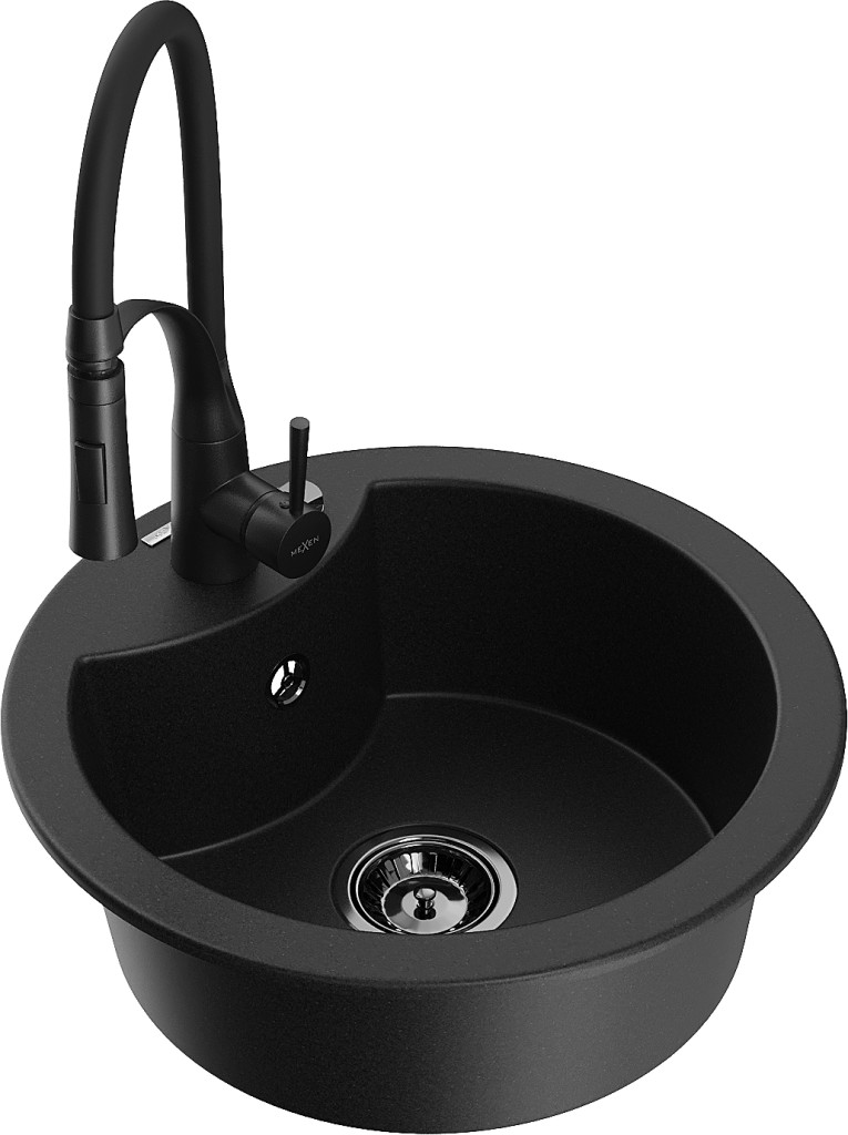 Technické dáta: drez: Rozmery: 488 x 488 x 167 mm Hĺbka komory: 157 mm Šírka komory: 406 mm Priemer odtoku: ø90 mm Typ: 1-komorový Typ: Zapustené do pracovnej dosky Čierna farba Povrchová úprava sifónu: čierna Materiál: žula (80% žulové kamenivo, 20% živice) Prepadový otvor: Áno Otvory: (batérie, automatické) 2 Vysoká odolnosť proti poškriabaniu a zmene farby Odolnosť proti tepelným šokom Ľahko čistiteľný povrch Jeden dodatočný vyfrézovaný otvor na samodierovanie ø35 kuchynská batéria: Materiál: mosadz Čierna farba Hlava: Keramická Prevzdušňovač: Áno Typ: Jedna páka Výška batérie: 430 mm Rozsah výtoku: 185 mm Batéria má výsuvný výtok(GT) Ean: 5905315046703