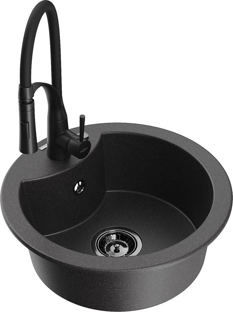 Technické dáta: drez: Rozmery: 488 x 488 x 167 mm Hĺbka komory: 157 mm Šírka komory: 406 mm Priemer odtoku: ø90 mm Typ: 1-komorový Typ: Zapustené do pracovnej dosky Farba: Škvrnitá čierna Povrchová úprava sifónu: čierna Materiál: žula (80% žulové kamenivo, 20% živice) Prepadový otvor: Áno Otvory: (batérie, automatické) 2 Vysoká odolnosť proti poškriabaniu a zmene farby Odolnosť proti tepelným šokom Ľahko čistiteľný povrch Jeden dodatočný vyfrézovaný otvor na samodierovanie ø35 kuchynská batéria: Materiál: mosadz Čierna farba Hlava: Keramická Prevzdušňovač: Áno Typ: Jedna páka Výška batérie: 430 mm Rozsah výtoku: 185 mm Batéria má výsuvný výtok(GT) Ean: 5905315046642