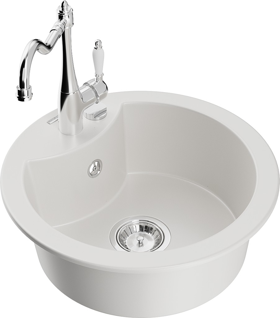 Technické dáta: drez: Rozmery: 488 x 488 x 167 mm Hĺbka komory: 157 mm Šírka komory: 406 mm Priemer odtoku: ø90 mm Typ: 1-komorový Typ: Zapustené do pracovnej dosky biela farba Povrchová úprava sifónu: Chrome Materiál: žula (80% žulové kamenivo, 20% živice) Prepadový otvor: Áno Otvory: (batérie, automatické) 2 Vysoká odolnosť proti poškriabaniu a zmene farby Odolnosť proti tepelným šokom Ľahko čistiteľný povrch Jeden dodatočný vyfrézovaný otvor na samodierovanie ø35 kuchynská batéria: Materiál: mosadz Farba: Chrome Hlava: Keramická Prevzdušňovač: Áno Typ: Jedna páka Výška batérie: 290 mm Rozsah výtoku: 260 mm(GT) Ean: 5905315040268