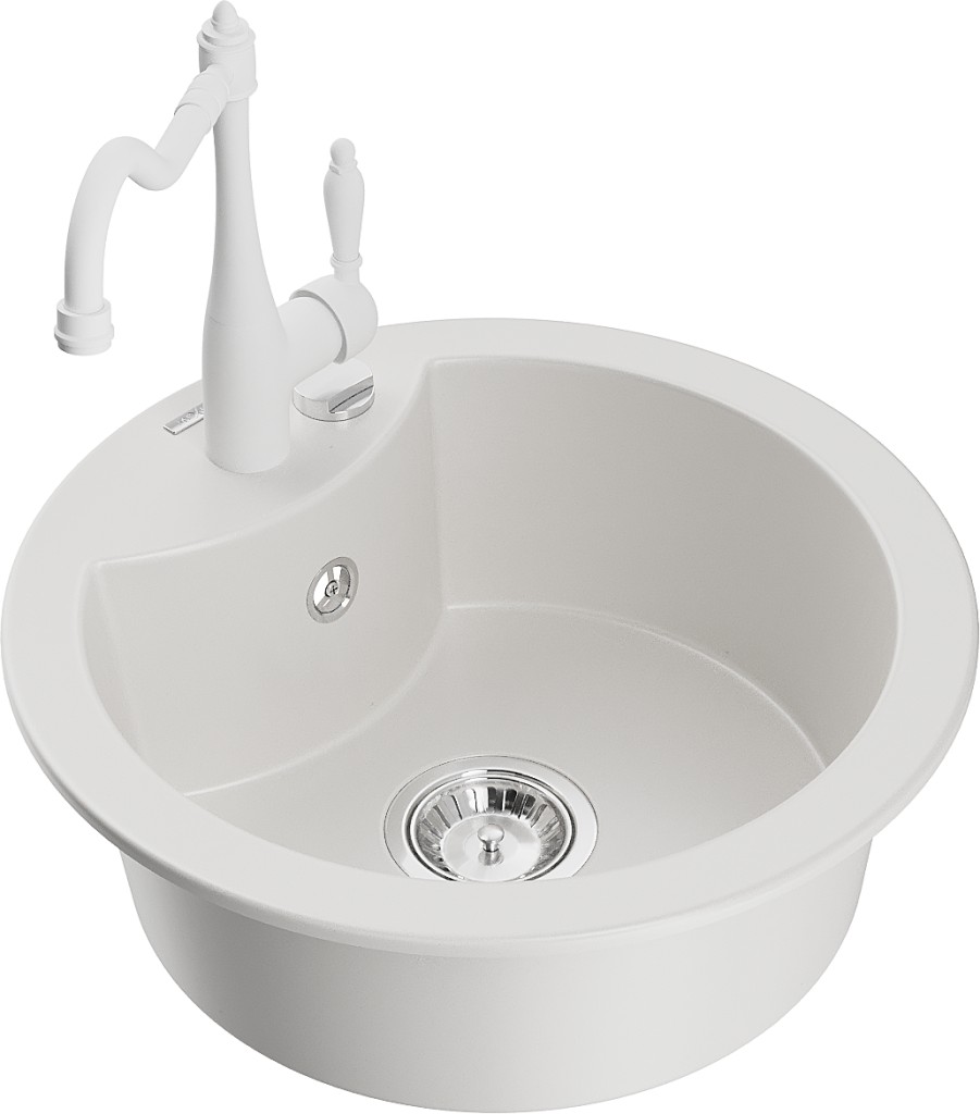 Technické dáta: drez: Rozmery: 488 x 488 x 167 mm Hĺbka komory: 157 mm Šírka komory: 406 mm Priemer odtoku: ø90 mm Typ: 1-komorový Typ: Zapustené do pracovnej dosky biela farba Povrchová úprava sifónu: Chrome Materiál: žula (80% žulové kamenivo, 20% živice) Prepadový otvor: Áno Otvory: (batérie, automatické) 2 Vysoká odolnosť proti poškriabaniu a zmene farby Odolnosť proti tepelným šokom Ľahko čistiteľný povrch Jeden dodatočný vyfrézovaný otvor na samodierovanie ø35 kuchynská batéria: Materiál: mosadz biela farba Hlava: Keramická Prevzdušňovač: Áno Typ: Jedna páka Výška batérie: 290 mm Rozsah výtoku: 260 mm(GT) Ean: 5905315040275