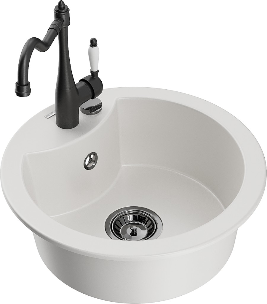 Technické dáta: drez: Rozmery: 488 x 488 x 167 mm Hĺbka komory: 157 mm Šírka komory: 406 mm Priemer odtoku: ø90 mm Typ: 1-komorový Typ: Zapustené do pracovnej dosky biela farba Povrchová úprava sifónu: čierna Materiál: žula (80% žulové kamenivo, 20% živice) Prepadový otvor: Áno Otvory: (batérie, automatické) 2 Vysoká odolnosť proti poškriabaniu a zmene farby Odolnosť proti tepelným šokom Ľahko čistiteľný povrch Jeden dodatočný vyfrézovaný otvor na samodierovanie ø35 kuchynská batéria: Materiál: mosadz Čierna farba Hlava: Keramická Prevzdušňovač: Áno Typ: Jedna páka Výška batérie: 290 mm Rozsah výtoku: 260 mm(GT) Ean: 5905315040299