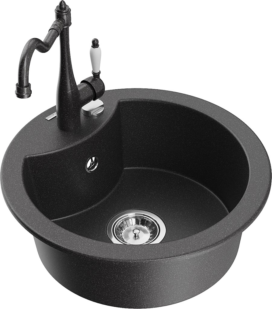 Technické dáta: drez: Rozmery: 488 x 488 x 167 mm Hĺbka komory: 157 mm Šírka komory: 406 mm Priemer odtoku: ø90 mm Typ: 1-komorový Typ: Zapustené do pracovnej dosky Farba: Škvrnitá čierna Povrchová úprava sifónu: Chrome Materiál: žula (80% žulové kamenivo, 20% živice) Prepadový otvor: Áno Otvory: (batérie, automatické) 2 Vysoká odolnosť proti poškriabaniu a zmene farby Odolnosť proti tepelným šokom Ľahko čistiteľný povrch Jeden dodatočný vyfrézovaný otvor na samodierovanie ø35 kuchynská batéria: Materiál: mosadz Farba: Škvrnitá čierna Hlava: Keramická Prevzdušňovač: Áno Typ: Jedna páka Výška batérie: 290 mm Rozsah výtoku: 260 mm(GT) Ean: 5905315040527
