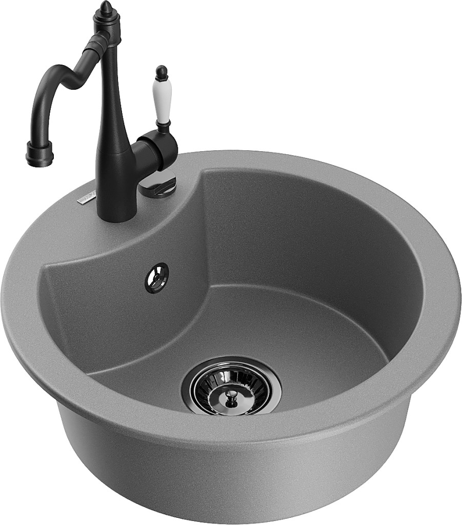 Technické dáta: drez: Rozmery: 488 x 488 x 167 mm Hĺbka komory: 157 mm Šírka komory: 406 mm Priemer odtoku: ø90 mm Typ: 1-komorový Typ: Zapustené do pracovnej dosky Šedá farba Povrchová úprava sifónu: čierna Materiál: žula (80% žulové kamenivo, 20% živice) Prepadový otvor: Áno Otvory: (batérie, automatické) 2 Vysoká odolnosť proti poškriabaniu a zmene farby Odolnosť proti tepelným šokom Ľahko čistiteľný povrch Jeden dodatočný vyfrézovaný otvor na samodierovanie ø35 kuchynská batéria: Materiál: mosadz Čierna farba Hlava: Keramická Prevzdušňovač: Áno Typ: Jedna páka Výška batérie: 290 mm Rozsah výtoku: 260 mm(GT) Ean: 5905315040374