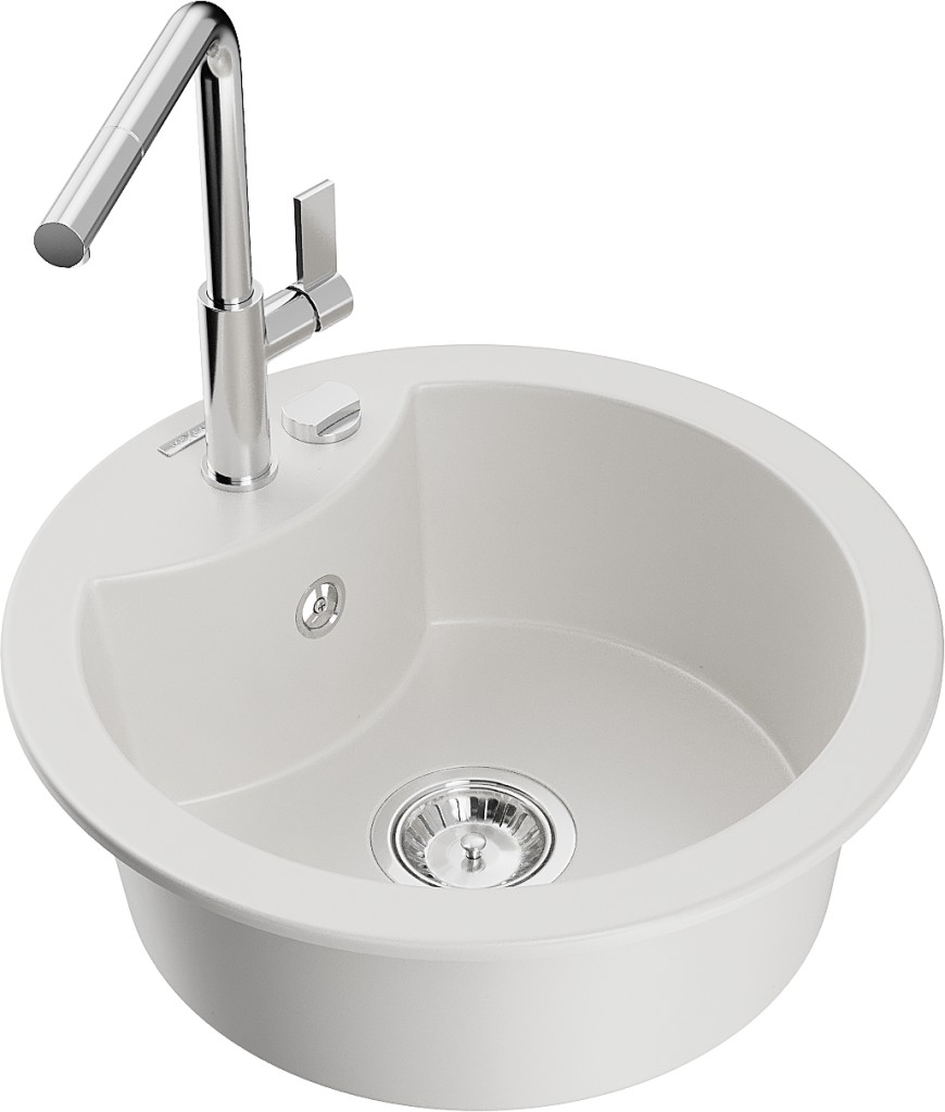 Technické dáta: drez: Rozmery: 488 x 488 x 167 mm Hĺbka komory: 157 mm Šírka komory: 406 mm Priemer odtoku: ø90 mm Typ: 1-komorový Typ: Zapustené do pracovnej dosky biela farba Povrchová úprava sifónu: Chrome Materiál: žula (80% žulové kamenivo, 20% živice) Prepadový otvor: Áno Otvory: (batérie, automatické) 2 Vysoká odolnosť proti poškriabaniu a zmene farby Odolnosť proti tepelným šokom Ľahko čistiteľný povrch Jeden dodatočný vyfrézovaný otvor na samodierovanie ø35 kuchynská batéria: Materiál: mosadz Farba: Chrome Hlava: Keramická Prevzdušňovač: Áno Typ: Jedna páka Rozsah výtoku: 245 mm Výška batérie: 307 mm(GT) Ean: 5905315060457