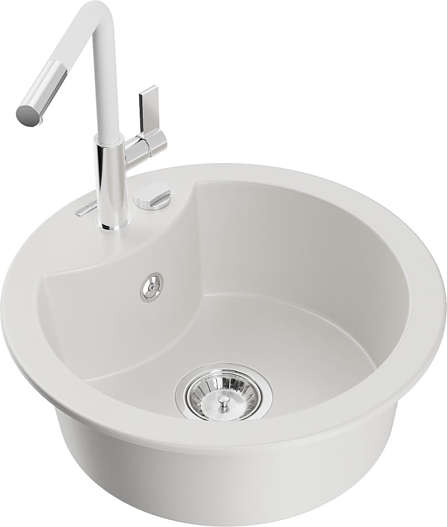 Technické dáta: drez: Rozmery: 488 x 488 x 167 mm Hĺbka komory: 157 mm Šírka komory: 406 mm Priemer odtoku: ø90 mm Typ: 1-komorový Typ: Zapustené do pracovnej dosky biela farba Povrchová úprava sifónu: Chrome Materiál: žula (80% žulové kamenivo, 20% živice) Prepadový otvor: Áno Otvory: (batérie, automatické) 2 Vysoká odolnosť proti poškriabaniu a zmene farby Odolnosť proti tepelným šokom Ľahko čistiteľný povrch Jeden dodatočný vyfrézovaný otvor na samodierovanie ø35 kuchynská batéria: Materiál: mosadz Farba: chróm/biela Hlava: Keramická Prevzdušňovač: Áno Typ: Jedna páka Rozsah výtoku: 245 mm Výška batérie: 307 mm(GT) Ean: 5905315060464