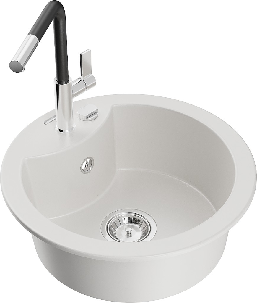 Technické dáta: drez: Rozmery: 488 x 488 x 167 mm Hĺbka komory: 157 mm Šírka komory: 406 mm Priemer odtoku: ø90 mm Typ: 1-komorový Typ: Zapustené do pracovnej dosky biela farba Povrchová úprava sifónu: Chrome Materiál: žula (80% žulové kamenivo, 20% živice) Prepadový otvor: Áno Otvory: (batérie, automatické) 2 Vysoká odolnosť proti poškriabaniu a zmene farby Odolnosť proti tepelným šokom Ľahko čistiteľný povrch Jeden dodatočný vyfrézovaný otvor na samodierovanie ø35 kuchynská batéria: Materiál: mosadz Farba: chróm/čierna Hlava: Keramická Prevzdušňovač: Áno Typ: Jedna páka Rozsah výtoku: 245 mm Výška batérie: 307 mm(GT) Ean: 5905315060488