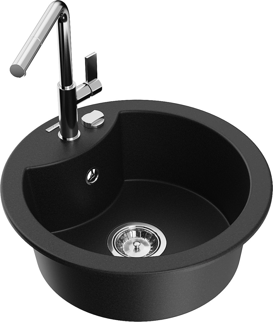 Technické dáta: drez: Rozmery: 488 x 488 x 167 mm Hĺbka komory: 157 mm Šírka komory: 406 mm Priemer odtoku: ø90 mm Typ: 1-komorový Typ: Zapustené do pracovnej dosky Čierna farba Povrchová úprava sifónu: Chrome Materiál: žula (80% žulové kamenivo, 20% živice) Prepadový otvor: Áno Otvory: (batérie, automatické) 2 Vysoká odolnosť proti poškriabaniu a zmene farby Odolnosť proti tepelným šokom Ľahko čistiteľný povrch Jeden dodatočný vyfrézovaný otvor na samodierovanie ø35 kuchynská batéria: Materiál: mosadz Farba: Chrome Hlava: Keramická Prevzdušňovač: Áno Typ: Jedna páka Rozsah výtoku: 245 mm Výška batérie: 307 mm(GT) Ean: 5905315060891