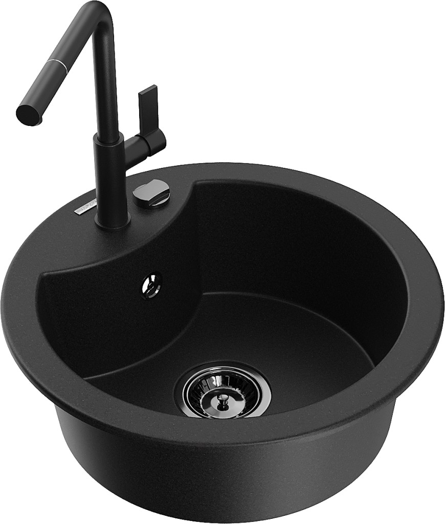 Technické dáta: drez: Rozmery: 488 x 488 x 167 mm Hĺbka komory: 157 mm Šírka komory: 406 mm Priemer odtoku: ø90 mm Typ: 1-komorový Typ: Zapustené do pracovnej dosky Čierna farba Povrchová úprava sifónu: čierna Materiál: žula (80% žulové kamenivo, 20% živice) Prepadový otvor: Áno Otvory: (batérie, automatické) 2 Vysoká odolnosť proti poškriabaniu a zmene farby Odolnosť proti tepelným šokom Ľahko čistiteľný povrch Jeden dodatočný vyfrézovaný otvor na samodierovanie ø35 kuchynská batéria: Materiál: mosadz Čierna farba Hlava: Keramická Prevzdušňovač: Áno Typ: Jedna páka Rozsah výtoku: 245 mm Výška batérie: 307 mm(GT) Ean: 5905315060945