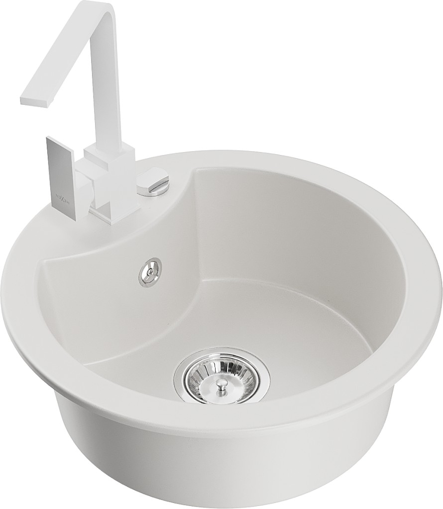 Technické dáta: drez: Rozmery: 488 x 488 x 167 mm Hĺbka komory: 157 mm Šírka komory: 406 mm Priemer odtoku: ø90 mm Typ: 1-komorový Typ: Zapustené do pracovnej dosky biela farba Povrchová úprava sifónu: Chrome Materiál: žula (80% žulové kamenivo, 20% živice) Prepadový otvor: Áno Otvory: (batérie, automatické) 2 Vysoká odolnosť proti poškriabaniu a zmene farby Odolnosť proti tepelným šokom Ľahko čistiteľný povrch Jeden dodatočný vyfrézovaný otvor na samodierovanie ø35 kuchynská batéria: Materiál: mosadz biela farba Hlava: Keramická Prevzdušňovač: Áno Typ: Jedna páka Výška batérie: 290 mm Rozsah výtoku: 220 mm(GT) Ean: 5905315019783