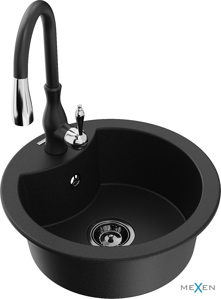 Technické dáta: drez: Rozmery: 488 x 488 x 167 mm Hĺbka komory: 157 mm Šírka komory: 406 mm Priemer odtoku: ø90 mm Typ: 1-komorový Typ: Zapustené do pracovnej dosky Čierna farba Povrchová úprava sifónu: čierna Materiál: žula (80% žulové kamenivo, 20% živice) Prepadový otvor: Áno Otvory: (batérie, automatické) 2 Vysoká odolnosť proti poškriabaniu a zmene farby Odolnosť proti tepelným šokom Ľahko čistiteľný povrch Jeden dodatočný vyfrézovaný otvor na samodierovanie ø35 kuchynská batéria: Materiál: mosadz Čierna farba Hlava: Keramická Prevzdušňovač: Áno Typ: Jedna páka Výška batérie: 410 mm Rozsah výtoku: 231 mm(GT) Ean: 5905315035424