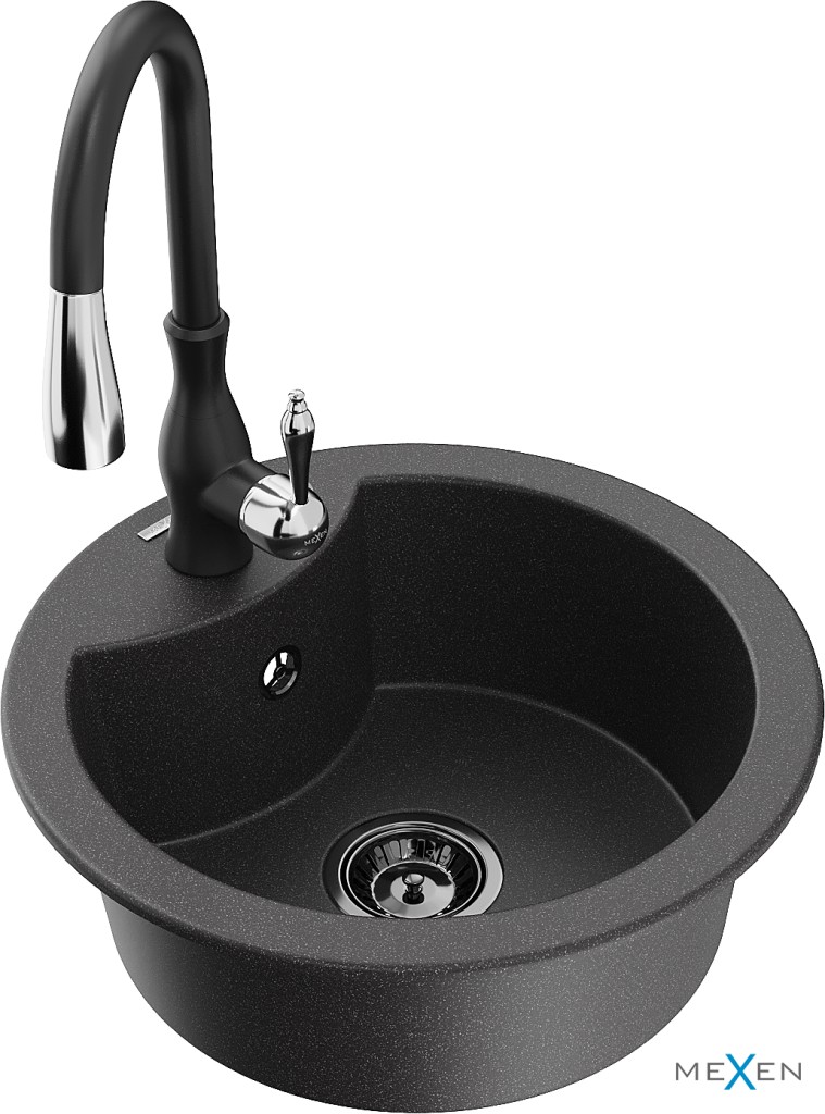 Technické dáta: drez: Rozmery: 488 x 488 x 167 mm Hĺbka komory: 157 mm Šírka komory: 406 mm Priemer odtoku: ø90 mm Typ: 1-komorový Typ: Zapustené do pracovnej dosky Farba: Škvrnitá čierna Povrchová úprava sifónu: čierna Materiál: žula (80% žulové kamenivo, 20% živice) Prepadový otvor: Áno Otvory: (batérie, automatické) 2 Vysoká odolnosť proti poškriabaniu a zmene farby Odolnosť proti tepelným šokom Ľahko čistiteľný povrch Jeden dodatočný vyfrézovaný otvor na samodierovanie ø35 kuchynská batéria: Materiál: mosadz Čierna farba Hlava: Keramická Prevzdušňovač: Áno Typ: Jedna páka Výška batérie: 410 mm Rozsah výtoku: 231 mm(GT) Ean: 5905315035370