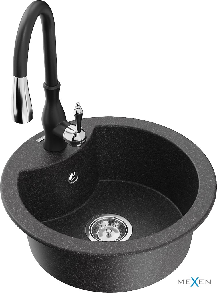 Technické dáta: drez: Rozmery: 488 x 488 x 167 mm Hĺbka komory: 157 mm Šírka komory: 406 mm Priemer odtoku: ø90 mm Typ: 1-komorový Typ: Zapustené do pracovnej dosky Farba: Škvrnitá čierna Povrchová úprava sifónu: Chrome Materiál: žula (80% žulové kamenivo, 20% živice) Prepadový otvor: Áno Otvory: (batérie, automatické) 2 Vysoká odolnosť proti poškriabaniu a zmene farby Odolnosť proti tepelným šokom Ľahko čistiteľný povrch Jeden dodatočný vyfrézovaný otvor na samodierovanie ø35 kuchynská batéria: Materiál: mosadz Čierna farba Hlava: Keramická Prevzdušňovač: Áno Typ: Jedna páka Výška batérie: 410 mm Rozsah výtoku: 231 mm(GT) Ean: 5905315035363