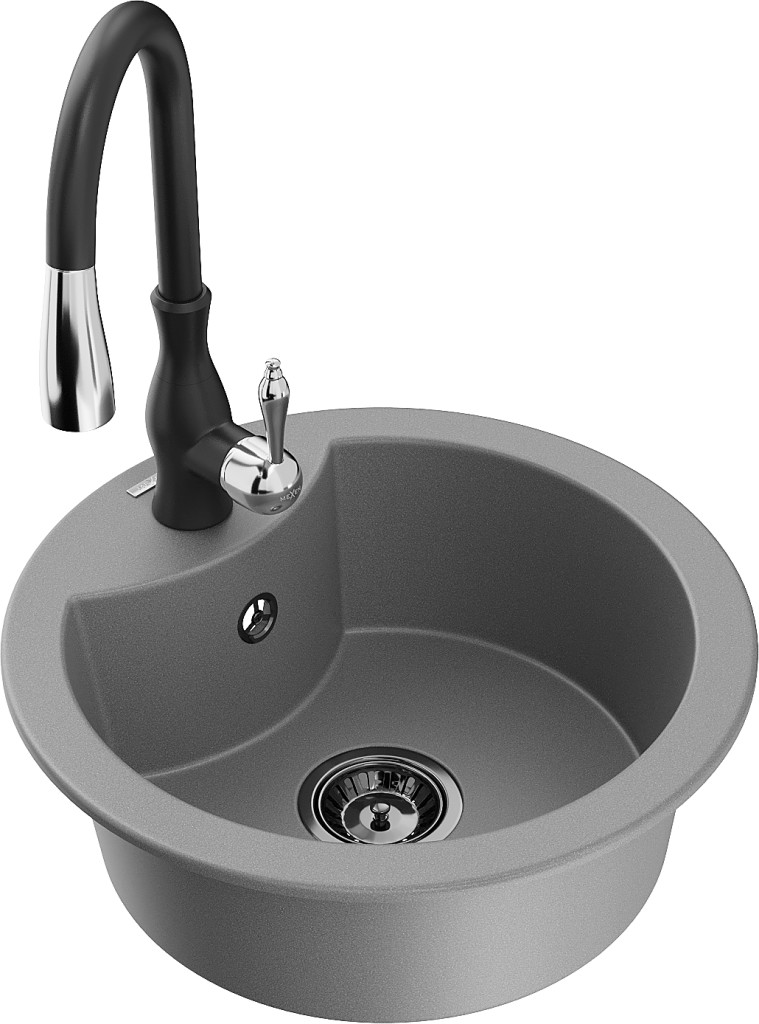 Technické dáta: drez: Rozmery: 488 x 488 x 167 mm Hĺbka komory: 157 mm Šírka komory: 406 mm Priemer odtoku: ø90 mm Typ: 1-komorový Typ: Zapustené do pracovnej dosky Šedá farba Povrchová úprava sifónu: čierna Materiál: žula (80% žulové kamenivo, 20% živice) Prepadový otvor: Áno Otvory: (batérie, automatické) 2 Vysoká odolnosť proti poškriabaniu a zmene farby Odolnosť proti tepelným šokom Ľahko čistiteľný povrch Jeden dodatočný vyfrézovaný otvor na samodierovanie ø35 kuchynská batéria: Materiál: mosadz Čierna farba Hlava: Keramická Prevzdušňovač: Áno Typ: Jedna páka Výška batérie: 410 mm Rozsah výtoku: 231 mm(GT) Ean: 5905315035233