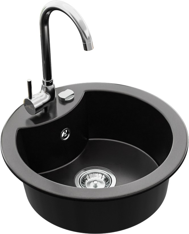 Technické dáta: drez: Rozmery: 488 x 488 x 167 mm Hĺbka komory: 157 mm Šírka komory: 406 mm Priemer odtoku: ø90 mm Typ: 1-komorový Typ: Zapustené do pracovnej dosky Čierna farba Povrchová úprava sifónu: Chrome Materiál: žula (80% žulové kamenivo, 20% živice) Prepadový otvor: Áno Otvory: (batérie, automatické) 2 Vysoká odolnosť proti poškriabaniu a zmene farby Odolnosť proti tepelným šokom Ľahko čistiteľný povrch Jeden dodatočný vyfrézovaný otvor na samodierovanie ø35 kuchynská batéria: Materiál: mosadz Farba: Chrome Hlava: Keramická Prevzdušňovač: Áno Výška batérie: 335 mm Rozsah výtoku: 180 mm(GT) Ean: 5907709160583