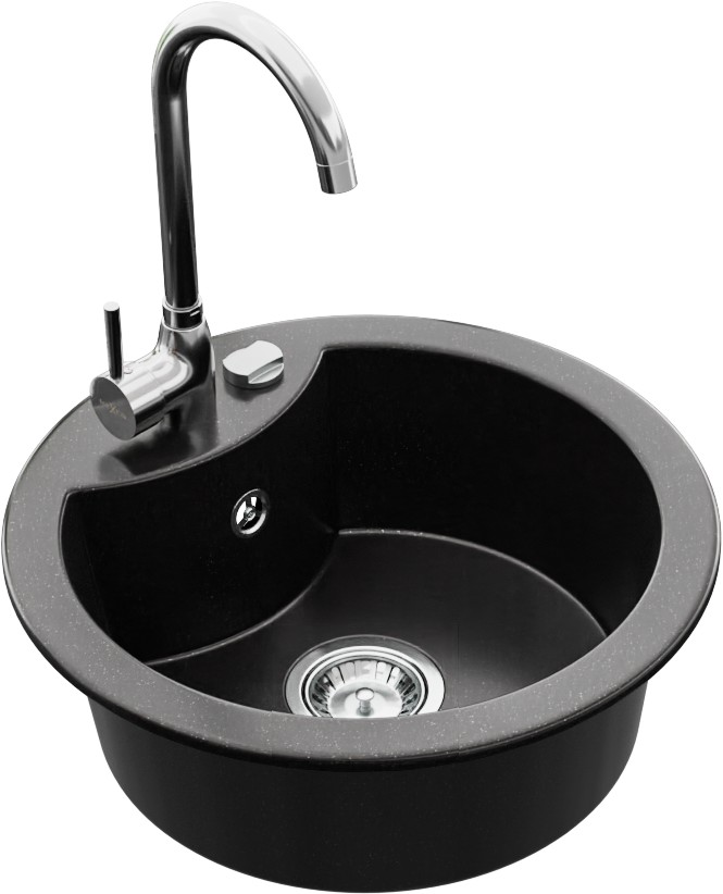 Technické dáta: drez: Rozmery: 488 x 488 x 167 mm Hĺbka komory: 157 mm Šírka komory: 406 mm Priemer odtoku: ø90 mm Typ: 1-komorový Typ: Zapustené do pracovnej dosky Farba: čierna/strieborná metalíza Povrchová úprava sifónu: Chrome Materiál: žula (80% žulové kamenivo, 20% živice) Prepadový otvor: Áno Otvory: (batérie, automatické) 2 Vysoká odolnosť proti poškriabaniu a zmene farby Odolnosť proti tepelným šokom Ľahko čistiteľný povrch Jeden dodatočný vyfrézovaný otvor na samodierovanie ø35 kuchynská batéria: Materiál: mosadz Farba: Chrome Hlava: Keramická Prevzdušňovač: Áno Výška batérie: 335 mm Rozsah výtoku: 180 mm(GT) Ean: 5907709160521