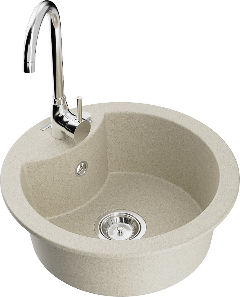 Technické dáta: Drez: Rozmer: 488x488x167 mm Hĺbka komory: 157 mm Šírka komory: 406 mm Priemer odtoku: ø90 mm Typ: 1-komorový Typ: Zapustené do pracovnej dosky Farba béžová Povrchová úprava sifónu: Chrome Materiál: žula (80% žulové kamenivo 20% živice) Prepadový otvor: Áno Otvory: (batérie, automat) 2 Vysoká odolnosť proti poškriabaniu a zmene farby Odolnosť proti tepelným šokom Povrch pre ľahké čistenie Jeden dodatočný vyfrézovaný otvor na samodierovanie ø35 Kuchynská batéria: Materiál: mosadz Farba: Chrome Hlava: Keramická Perlátor: Áno Typ: Jednopáková Výška batérie: 335 mm Rozsah výtoku: 180 mm(GT) Ean: 5905315015266