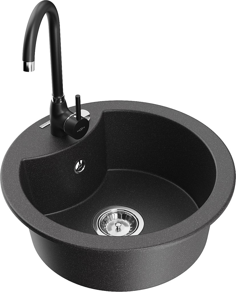 Technické dáta: drez: Rozmery: 488 x 488 x 167 mm Hĺbka komory: 157 mm Šírka komory: 406 mm Priemer odtoku: ø90 mm Typ: 1-komorový Typ: Zapustené do pracovnej dosky Farba: Škvrnitá čierna Povrchová úprava sifónu: Chrome Materiál: žula (80% žulové kamenivo, 20% živice) Prepadový otvor: Áno Otvory: (batérie, automatické) 2 Vysoká odolnosť proti poškriabaniu a zmene farby Odolnosť proti tepelným šokom Ľahko čistiteľný povrch Jeden dodatočný vyfrézovaný otvor na samodierovanie ø35 kuchynská batéria: Materiál: mosadz Čierna farba Hlava: Keramická Prevzdušňovač: Áno Typ: Jedna páka Výška batérie: 335 mm Rozsah výtoku: 180 mm(GT) Ean: 5905315015389