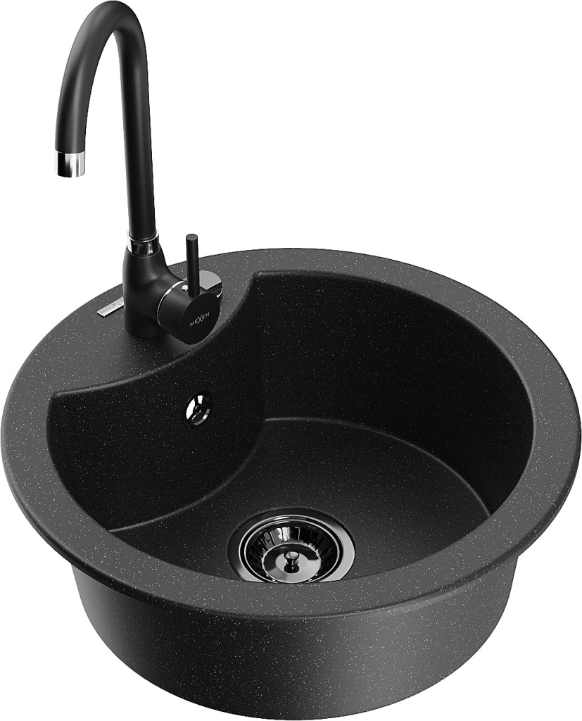 Technické dáta: drez: Rozmery: 488 x 488 x 167 mm Hĺbka komory: 157 mm Šírka komory: 406 mm Priemer odtoku: ø90 mm Typ: 1-komorový Typ: Zapustené do pracovnej dosky Farba: čierna/strieborná metalíza Povrchová úprava sifónu: čierna Materiál: žula (80% žulové kamenivo, 20% živice) Prepadový otvor: Áno Otvory: (batérie, automatické) 2 Vysoká odolnosť proti poškriabaniu a zmene farby Odolnosť proti tepelným šokom Ľahko čistiteľný povrch Jeden dodatočný vyfrézovaný otvor na samodierovanie ø35 kuchynská batéria: Materiál: mosadz Čierna farba Hlava: Keramická Prevzdušňovač: Áno Typ: Jedna páka Výška batérie: 335 mm Rozsah výtoku: 180 mm(GT) Ean: 5905315015334