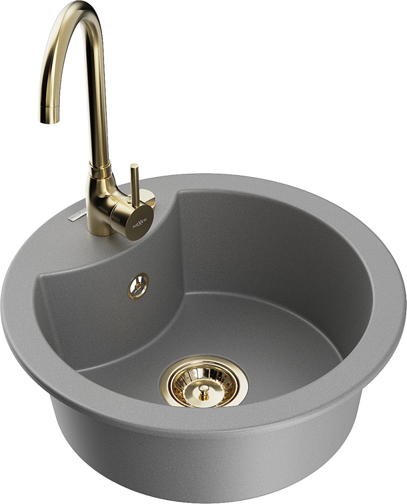 Technické dáta: drez: Rozmery: 488 x 488 x 167 mm Hĺbka komory: 157 mm Šírka komory: 406 mm Priemer odtoku: ø90 mm Typ: 1-komorový Typ: Zapustené do pracovnej dosky Šedá farba Povrchová úprava sifónu: zlatá Materiál: žula (80% žulové kamenivo, 20% živice) Prepadový otvor: Áno Otvory: (batérie, automatické) 2 Vysoká odolnosť proti poškriabaniu a zmene farby Odolnosť proti tepelným šokom Ľahko čistiteľný povrch Jeden dodatočný vyfrézovaný otvor na samodierovanie ø35 kuchynská batéria: Materiál: mosadz Farba: Zlatá Hlava: Keramická Prevzdušňovač: Áno Typ: Jedna páka Výška batérie: 335 mm Rozsah výtoku: 180 mm(GT) Ean: 5905315015297