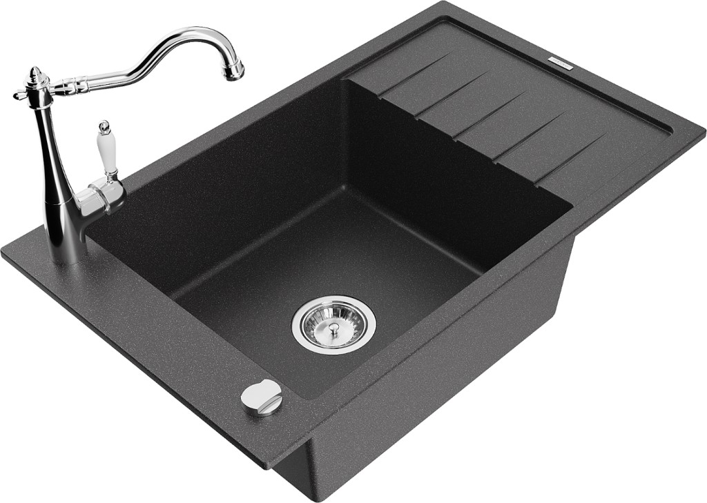 Technické dáta: drez: Rozmer: 795 x 480 x 200 mm Hĺbka komory: 190 mm Rozmery komory: 465x420 mm Priemer odtoku: ø90 mm Typ: 1-miska s krátkym odkvapkávačom Typ: Zapustené do pracovnej dosky Farba: Škvrnitá čierna Povrchová úprava sifónu: Chrome Materiál: žula (80% žulové kamenivo, 20% živice) Prepadový otvor: Áno Otvory: (batérie, automatické) 2 Inštalácia: Univerzálna, je možné inštalovať s odkvapkávačom na ľavú alebo pravú stranu Vysoká odolnosť proti poškriabaniu a zmene farby Odolnosť proti tepelným šokom Ľahko čistiteľný povrch Jeden dodatočný vyfrézovaný otvor na samodierovanie ø35 kuchynská batéria: Materiál: mosadz Farba: Chrome Hlava: Keramická Prevzdušňovač: Áno Typ: Jedna páka Výška batérie: 290 mm Rozsah výtoku: 260 mm(GT) Ean: 5905315040169